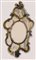 in vetro policromo, una nei toni del verde, l'altra dell'azzurro e del rosa; cornice sagomata sormontata da palmetta stilizzata e decorata da rose applicate, con specchi incisi all'acido a motivi fitomorfi, specchio centrale ovale