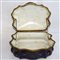 cofanetto in porcellana policroma dipinta a mano, con decori a motivi floreali entro riserva centrale, lumeggiature dorate
