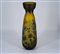 in vetro doppio strato con decoro di tralci fioriti inciso ad acido nei toni del verde e del celeste su fondo arancio