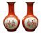 Cina coppia di vasi in porcellana fondo color corallo decoro in oro zecchino e figure dipinte
