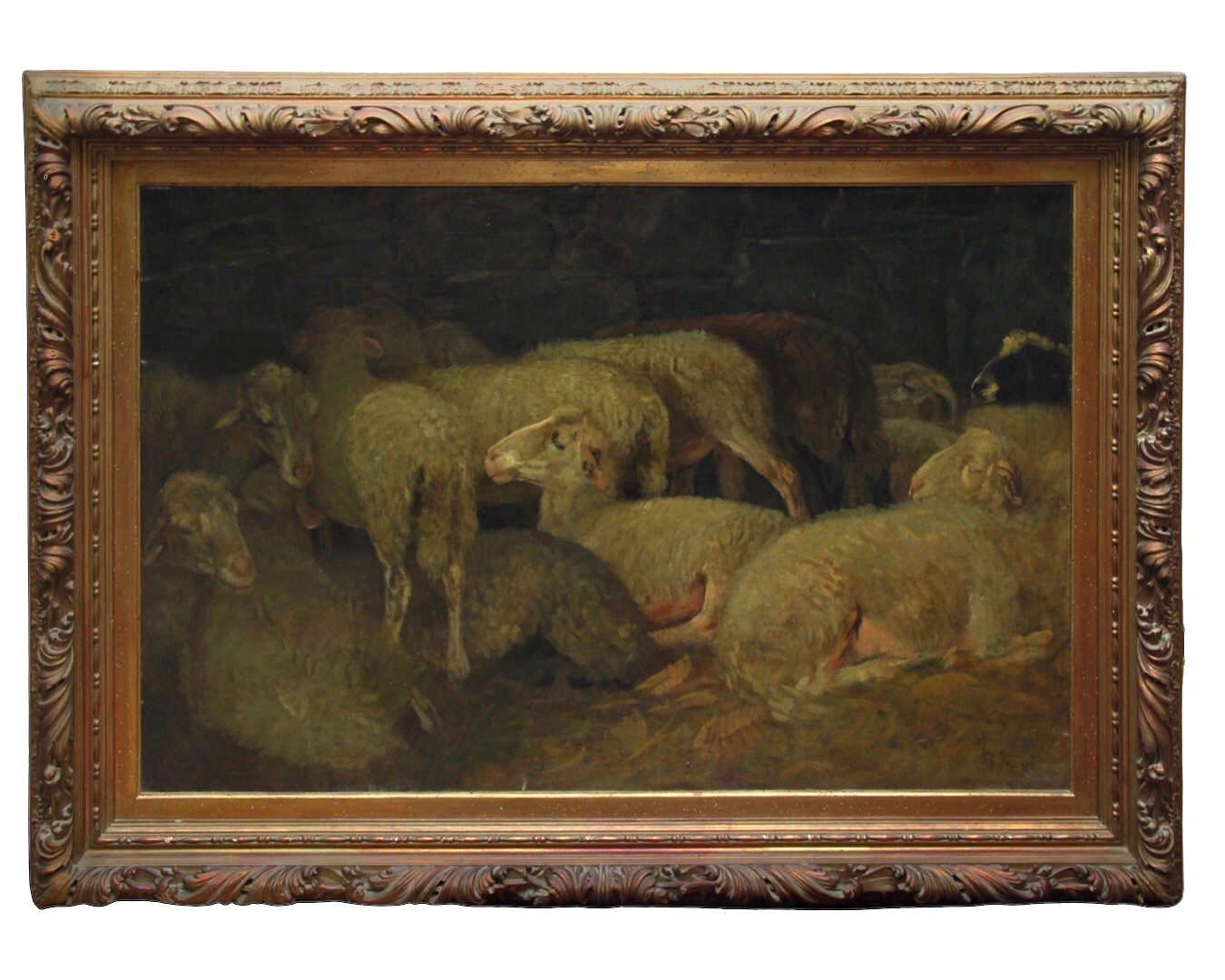 Ruggero Panerai (Firenze 1862 - Parigi 1923) 'Nell'ovile' olio su tela firmato e datato in basso a destra sul retro etichetta Galleria d'arte il Ducale
