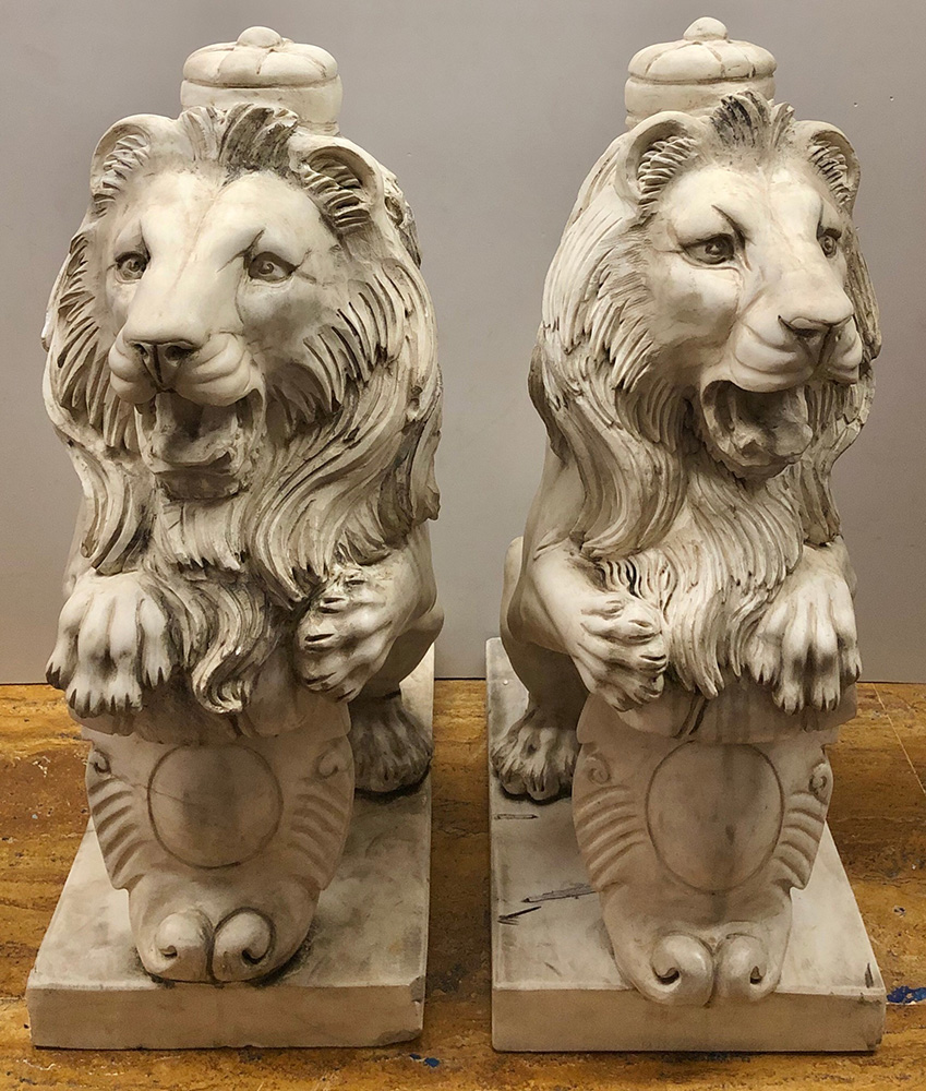 Precedente Lotto 62 Successivo Casa d'Aste Martini - C.so Cavallotti 76, 18038 Sanremo Asta 75 Sessione Unica giovedì 24 marzo 2022 ore 15:00 (UTC +01:00) SCULTURA Coppia di leoni in marmo bianco sec. XXcm h69