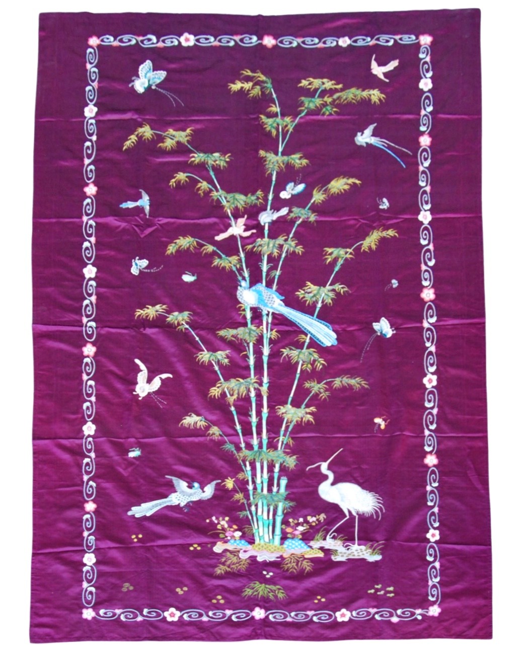 Precedente Lotto 91 Successivo Casa d'Aste Martini - C.so Cavallotti 76, 18038 Sanremo Asta 75 Sessione Unica giovedì 24 marzo 2022 ore 15:00 (UTC +01:00) OGGETTISTICA Cina tessuto ricamato con bambù e volatilicm 133x263
