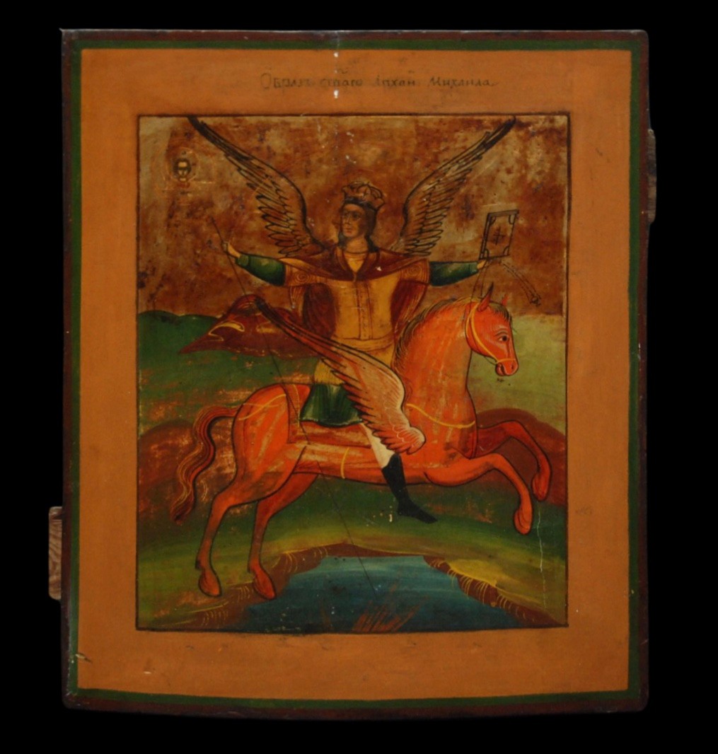 Icona tempera all'uovo su tavola raff. San Michele Arcangelo Russia fine sec. XIX
