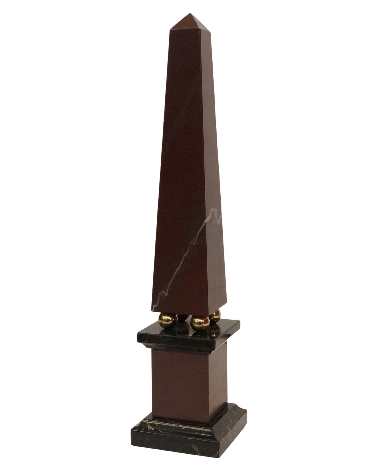 Precedente Lotto 223 Successivo Casa d'Aste Martini - C.so Cavallotti 76, 18038 Sanremo Asta 75 Sessione Unica giovedì 24 marzo 2022 ore 15:00 (UTC +01:00) OGGETTISTICA Obelisco in marmo rosso e nero con sfere in metallo doratocm h43