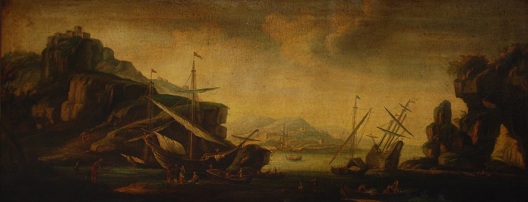 Precedente Lotto 293 Successivo Casa d'Aste Martini - C.so Cavallotti 76, 18038 Sanremo Asta 75 Sessione Unica giovedì 24 marzo 2022 ore 15:00 (UTC +01:00) DIPINTO Olio su tela raff. paesaggio con barchecm 70x170
