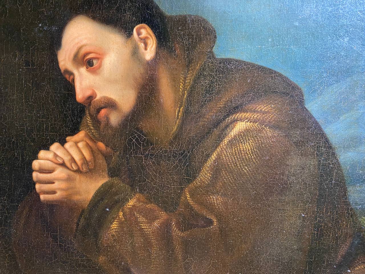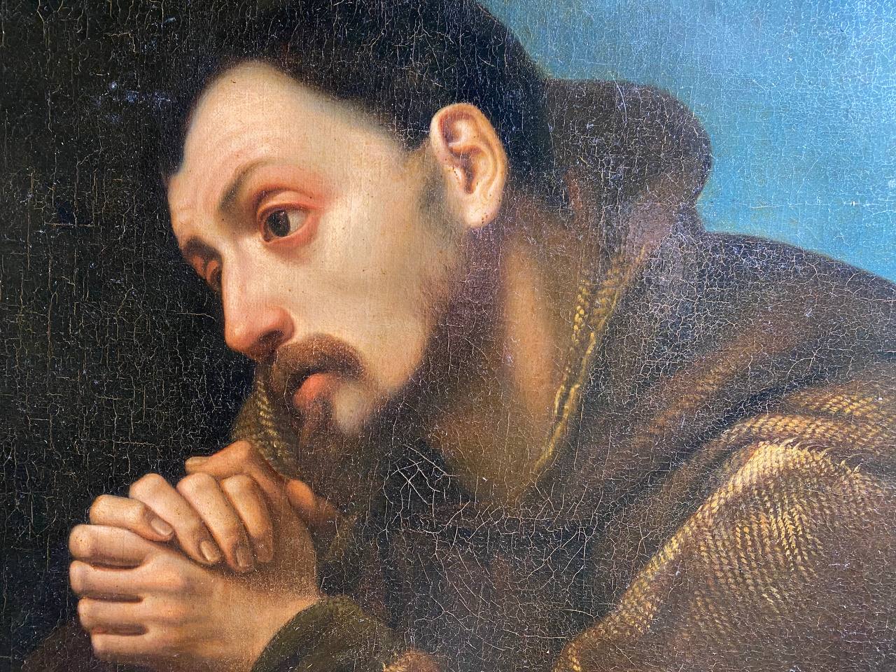 "San Francesco". Begin of XVII century. Oil on canvas (dubbed). Size 93x77 cm. Provenance: Private Collection, Firenze (Italy)