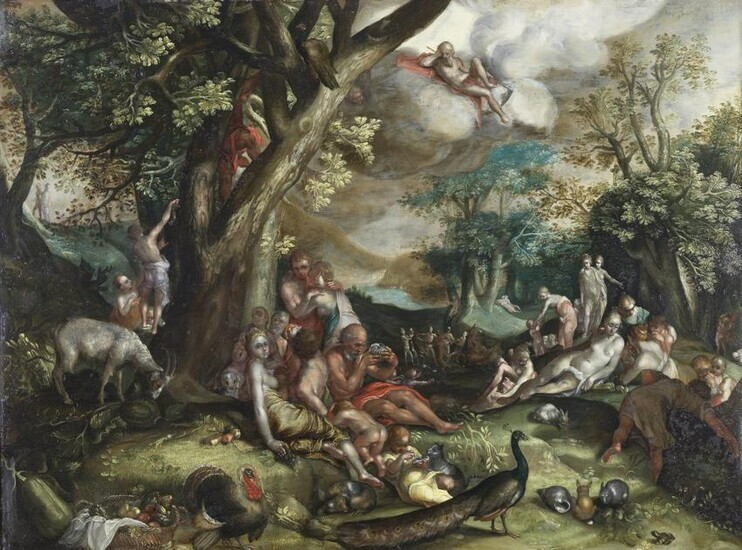 Abraham Bloemaert and Atelier "The golden age". Oil on copper. Size 62,50 x 47,50 cm. Reference bibliography: Marcel G. Roethlisberger, Abraham Bloemaert and his sons, paintings and prints, Doornspijk Dovaco, 1993, vol. I, pp. 115-118, vol. II, tav, 119-120, cat. 70, cat. D9.The work will be included in the forthcoming catalogue addenda.The artwork is accompanied by a text by Marcel Roethlisberger, March 30th 2006. Provenance: Private Collection, Amsterdam