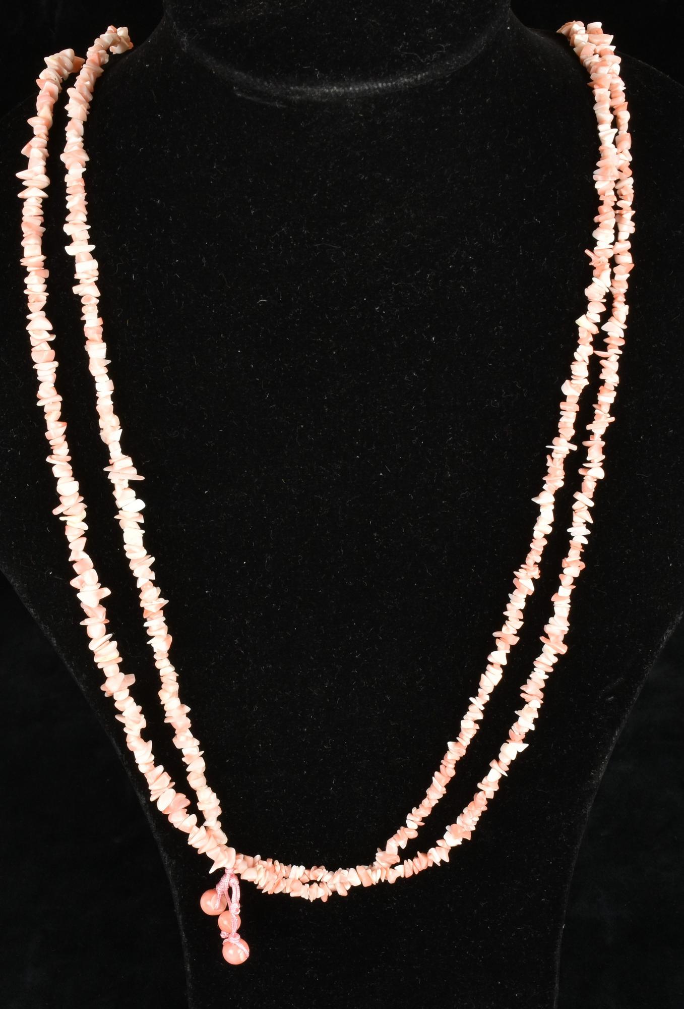 GIROCOLLO TIPO CORALLO ROSA PEAU D'ANGE a quattro fili lunghezza 43 cm