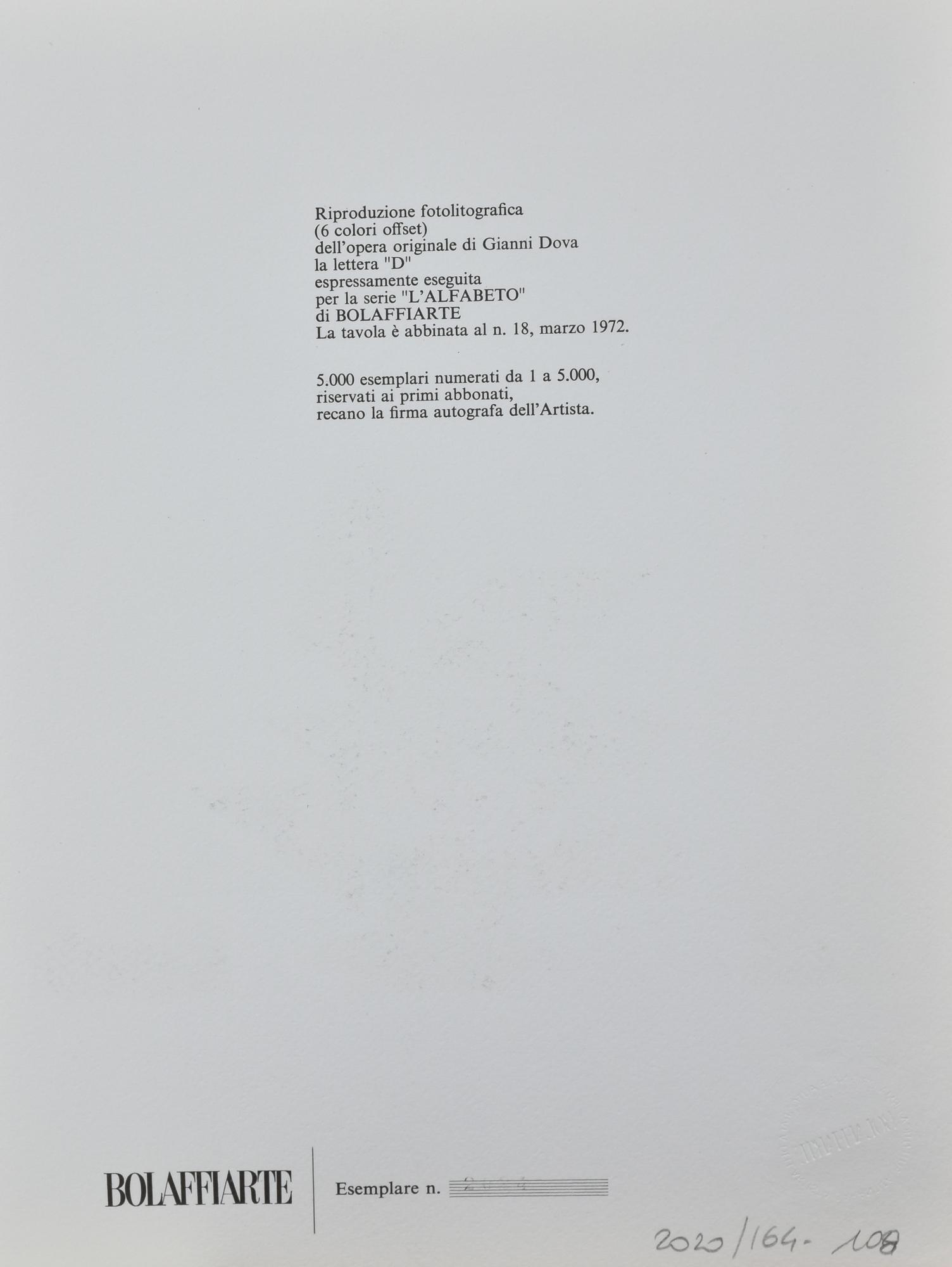 Gianni Dova LETTERA D riproduzione fotolitografica su cartoncino, cm 30x23,5;...