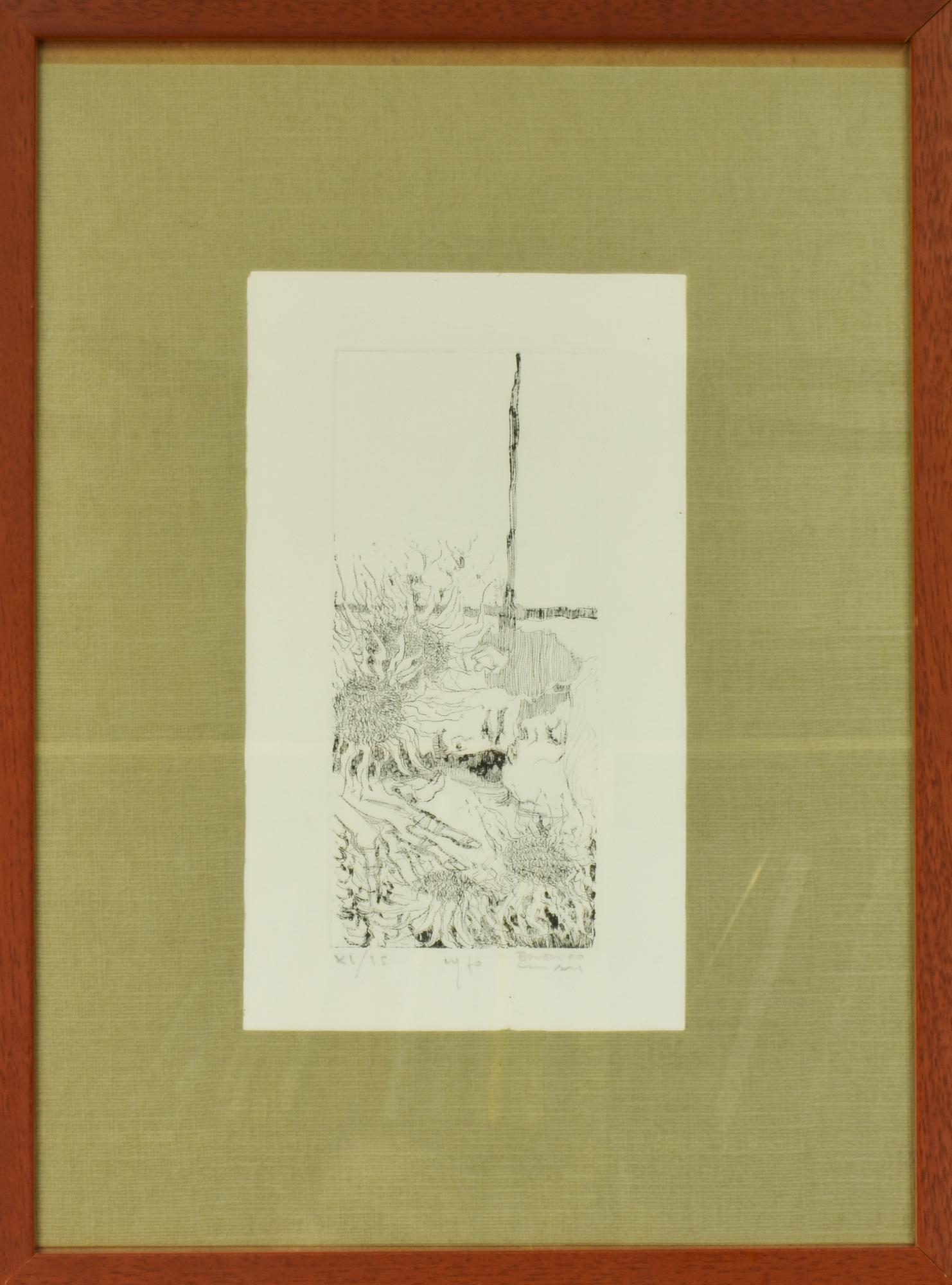 incisione su carta, battuta cm 24x10, foglio cm 48x37; es. 11/25