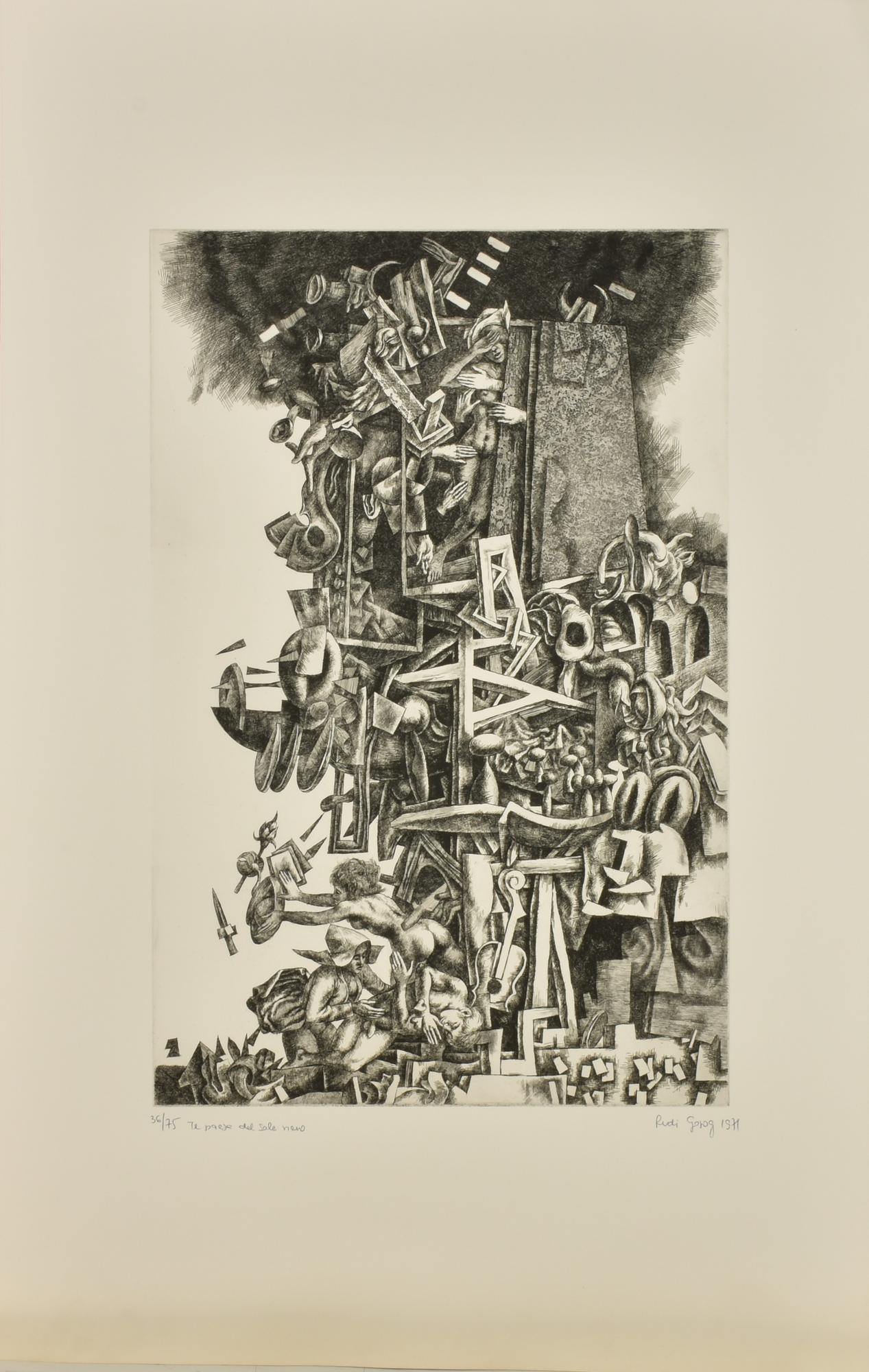 Rudi Gorog IL PAESE DEL SOLE ERO incisione su carta, battuta cm 59,5x39,5, su...