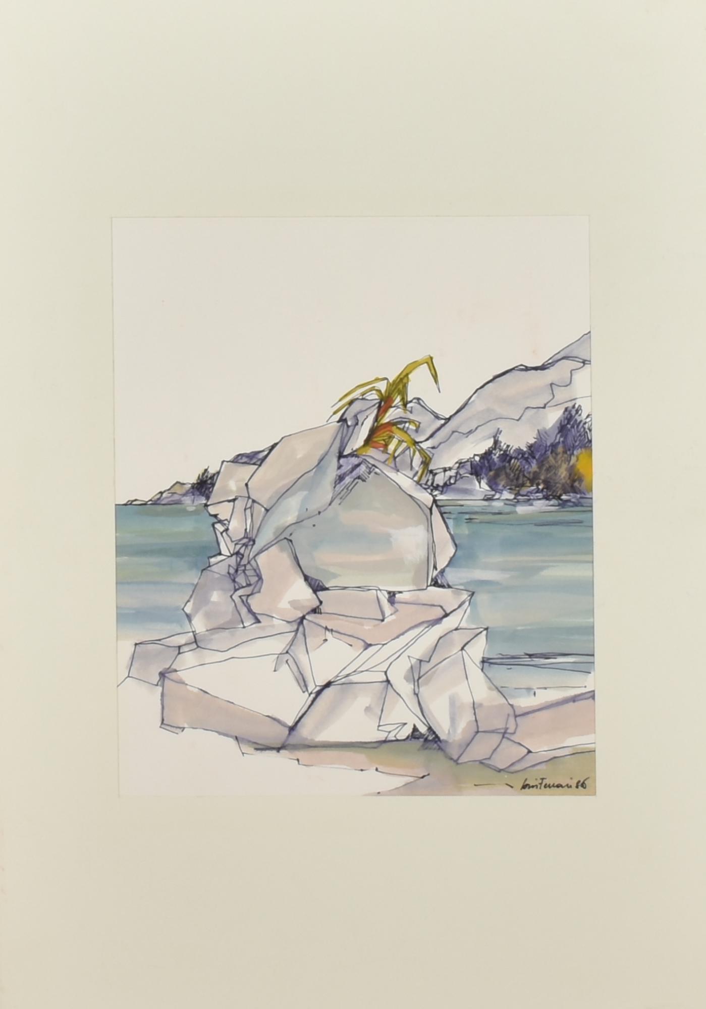 Loris Ferrari ROCCE acquarello e china su carta, cm 29x24 firma e data...
