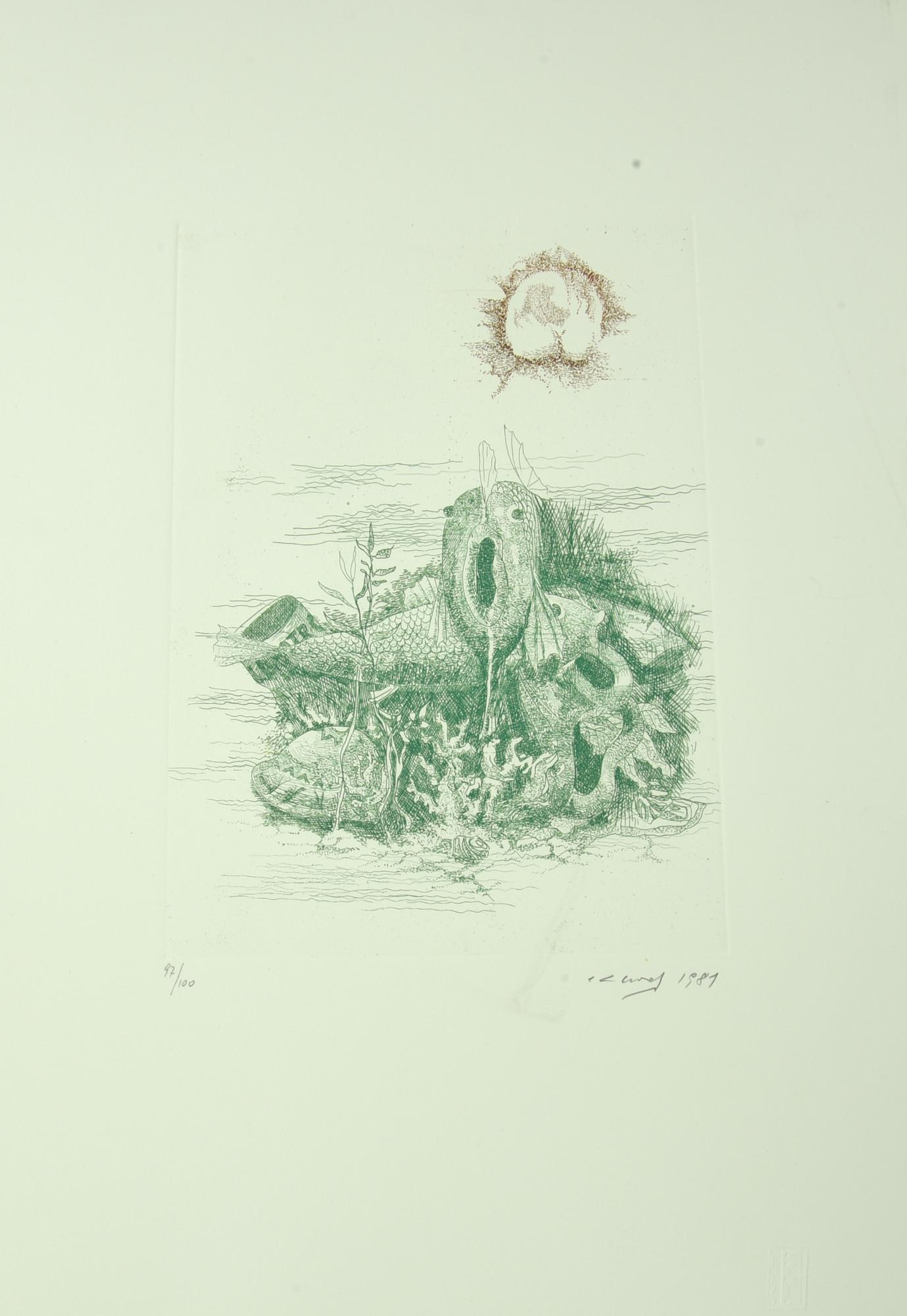 Godwin Ekhart L'ULTIMA ISOLA acquaforte a due colori, cm 34,6x24,5, su foglio...