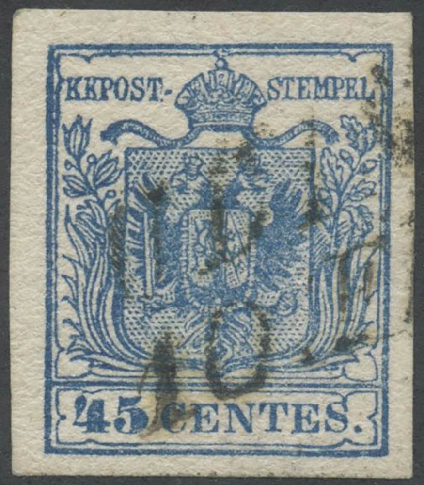 1855, 45c. N.12d Oltremare Grigiastro Chiaro. (A+) (Cat.2.500)