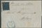 9.1.1857, Lettera da Modena per Milano affrancata tramite un 40c. Azzurro scuro N.10. Primo porto per la 3° distanza dal confine Lombardo. Sul fronte ''Ferma in Posta'' manoscritto. (A) (Cat.875++)