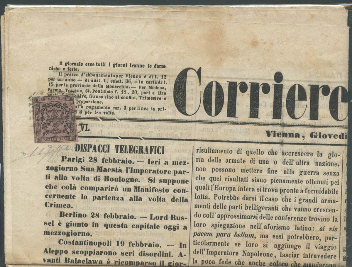 1.3.1855, Giornale affrancato con un 9c. Violetto Grigio N.2. (Lux) (Cat.300)