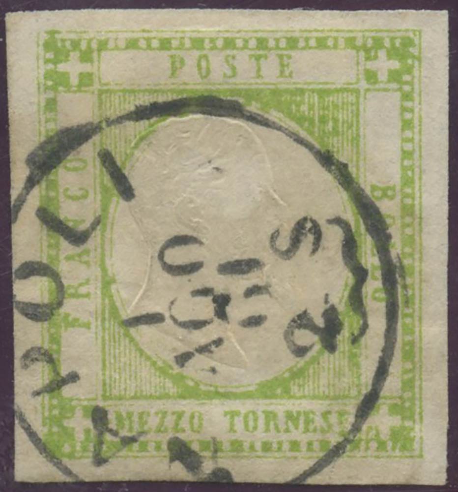 1861, 1/2t. Verde Giallo Chiaro N.17a, usato.Invisibile piega.