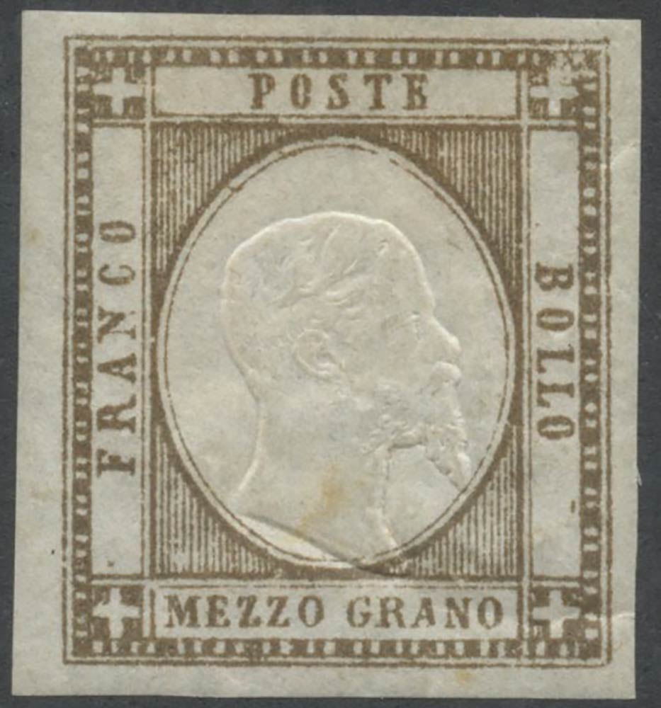 1861, 1/2gr. Bruno N.18d nuovo con gomma, linguellato. Classiche grinze di gomma al retro. (A) (Cat.400)
