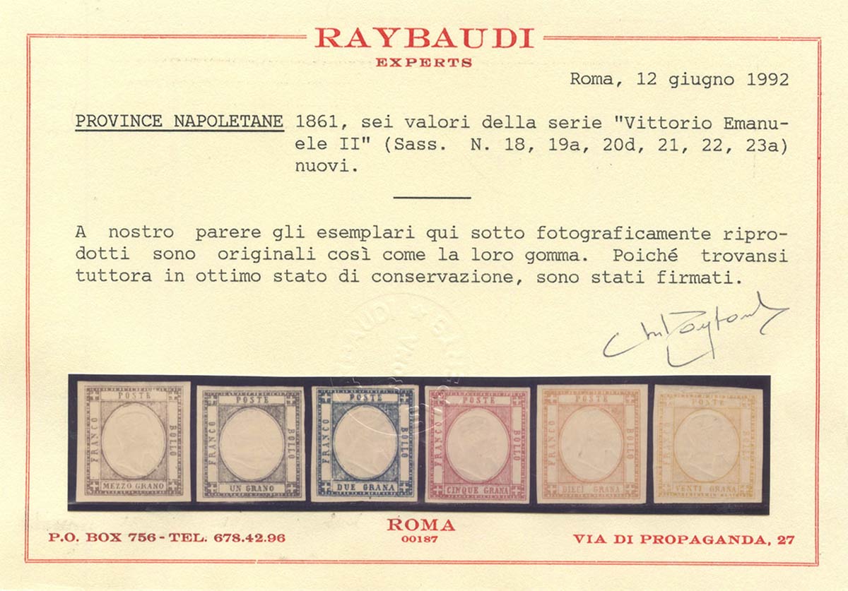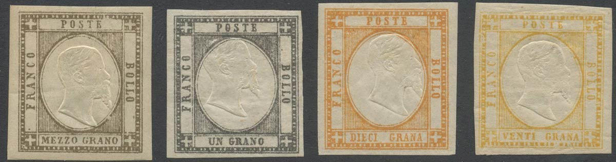 1861, N.18, 19a, 22, 23a nuovi, Linguellati. Notata tonalità interessante del 1/2gr. (A+) (Cert. Raybaudi della serie di provenienza) (Cat.1900++)
