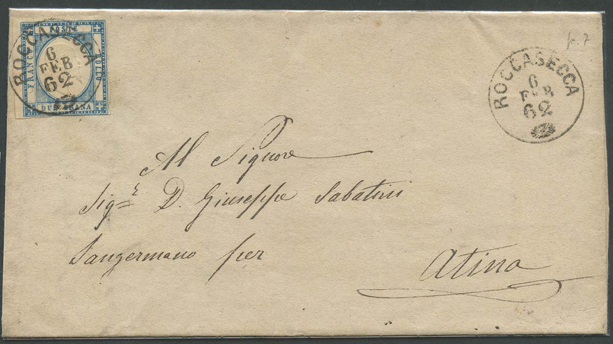 Lotto 171 | 6.2.1862, Lettera da Rocca Secca per S.Germano.Sull'affrancatura il cerchio di ROCCA SECCA(7pt.). (A-) (Cat.625)