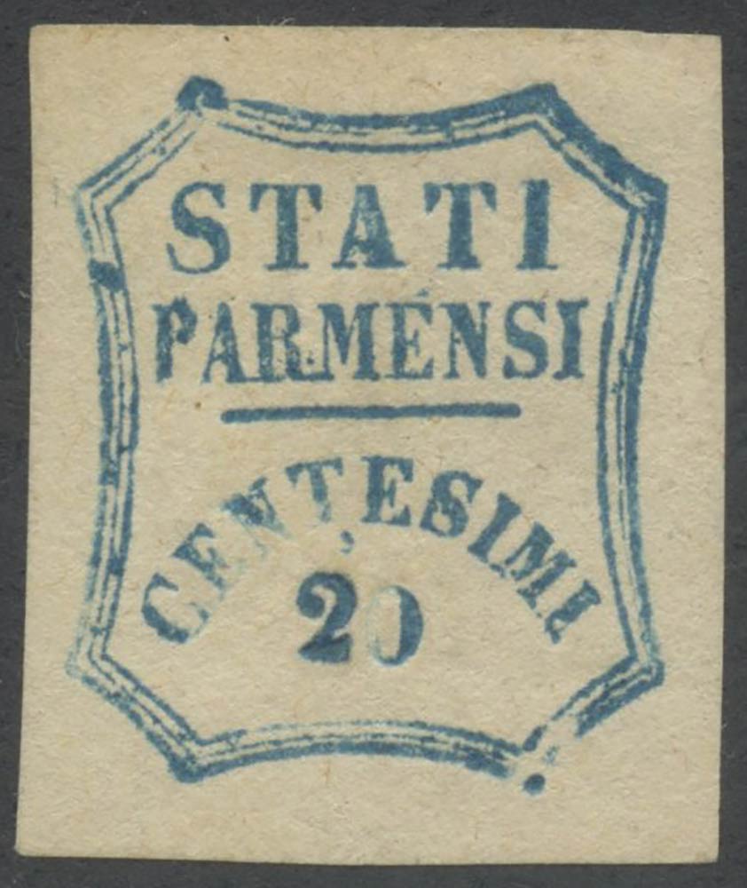 1859, 20c. Azzurro N.15 nuovo con gomma, linguellato. (Lux) (A.Diena) (Cat.2200)