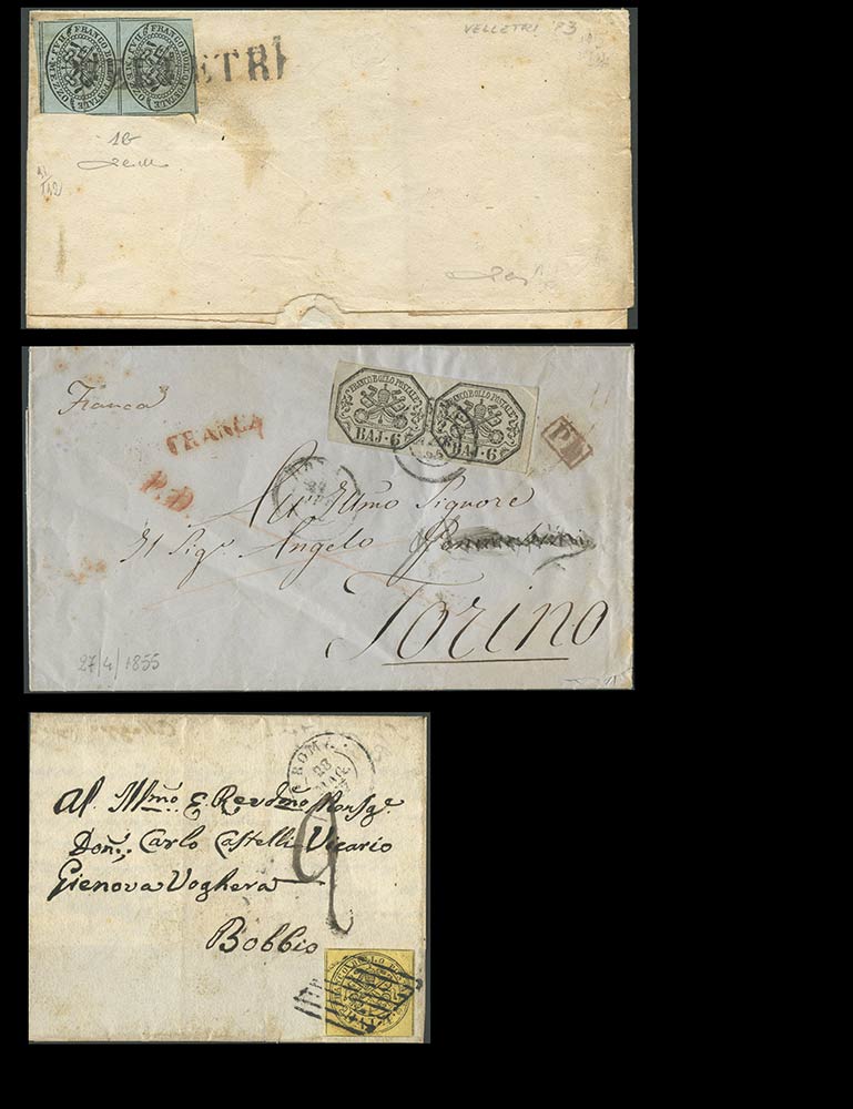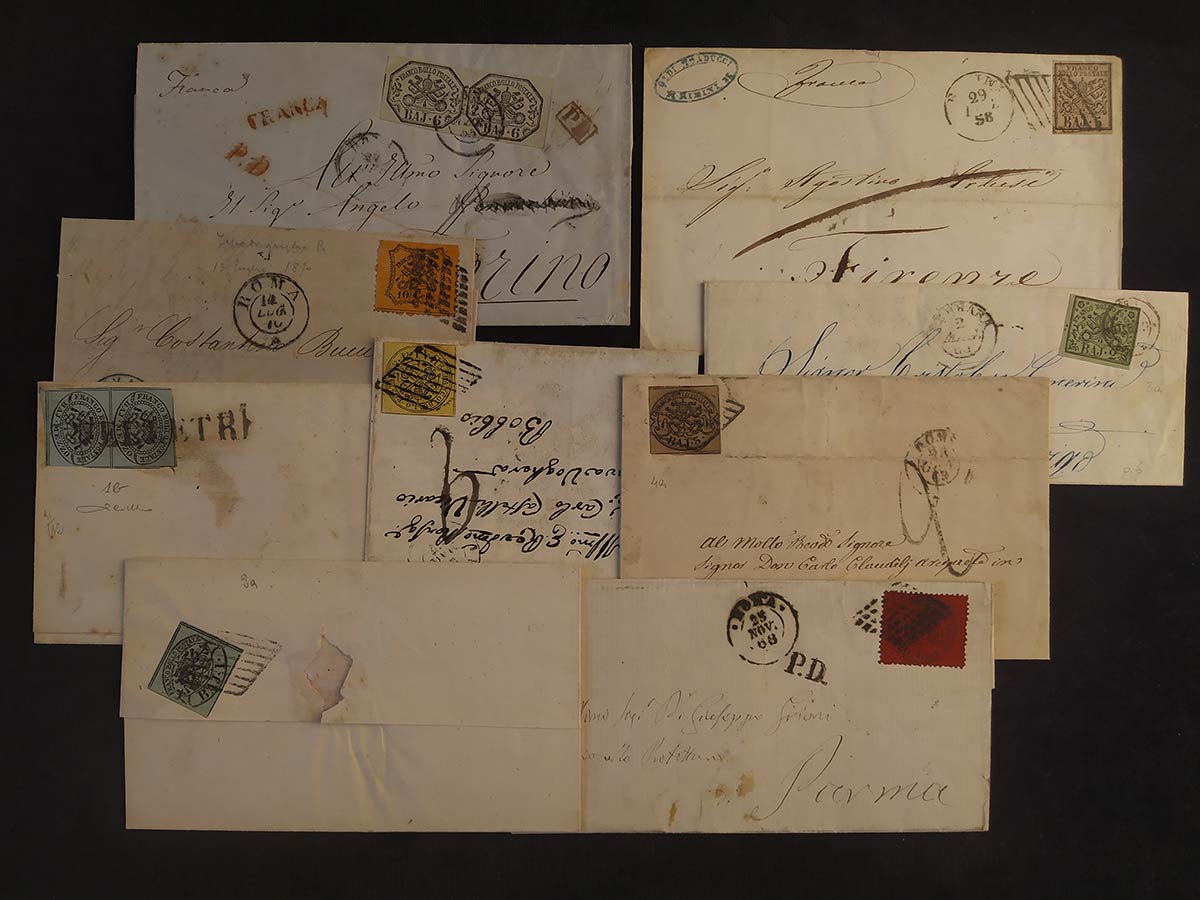 Precedente Lotto 231 Successivo Bertolami Fine Art - Piazza Lovatelli 1, 00186 Roma Web Auction 114 - Filatelia Sessione Unica martedì 5 aprile 2022 ore 12:00 (UTC +01:00) Pontificio, Lotto di 6 lettere. Pontificio, Lotto di 6 lettere.