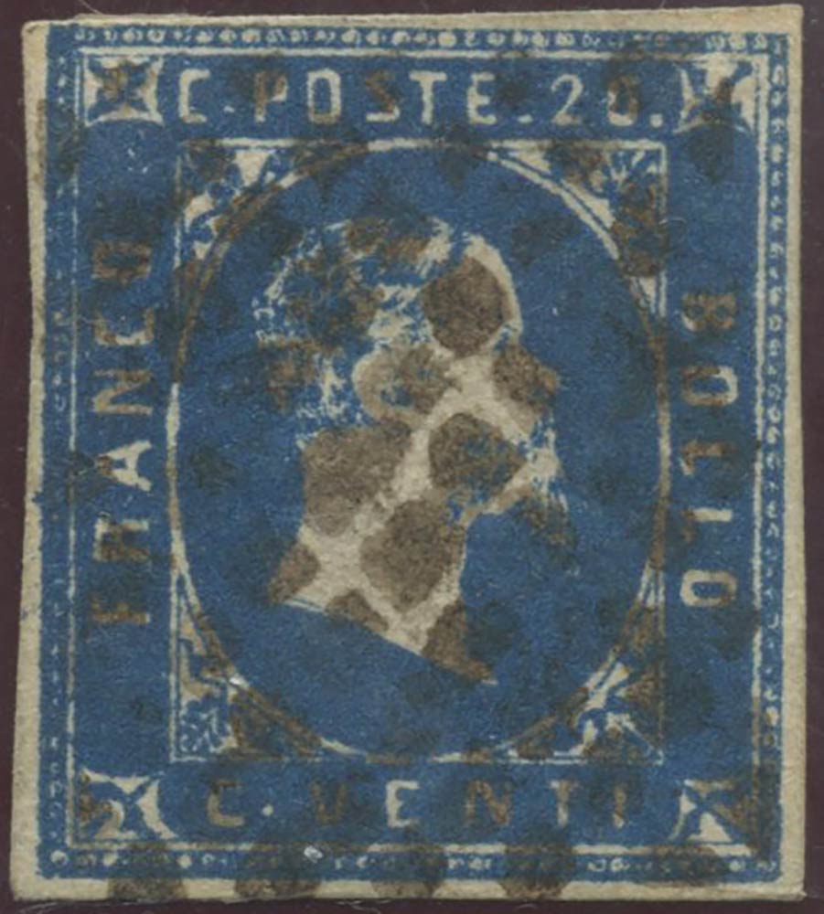 1851, 20c. Azzurro N.2. (A+) (A.Diena, Raybaudi) (Cat.550)