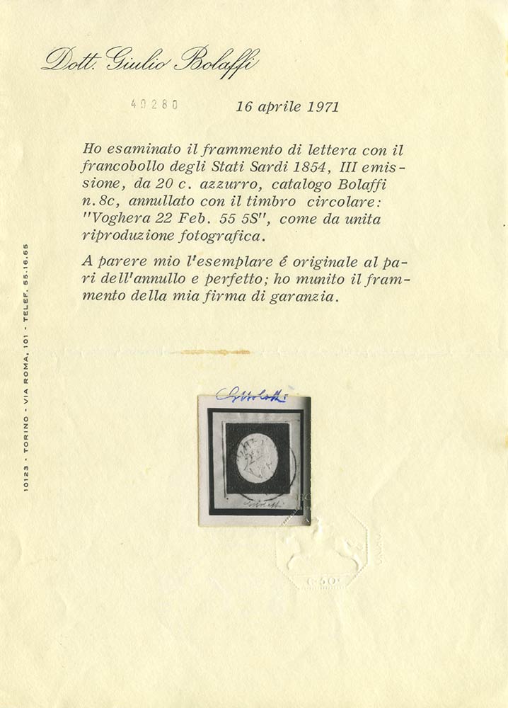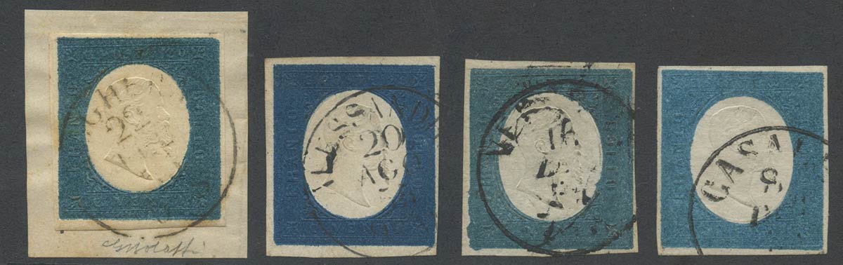 1854, Lotto di quattro valori da 20c. In altrettante interessanti nuance di colore. Tutti di ottima qualità. (A+) (A.Diena, Bolaffi, Raybaudi)