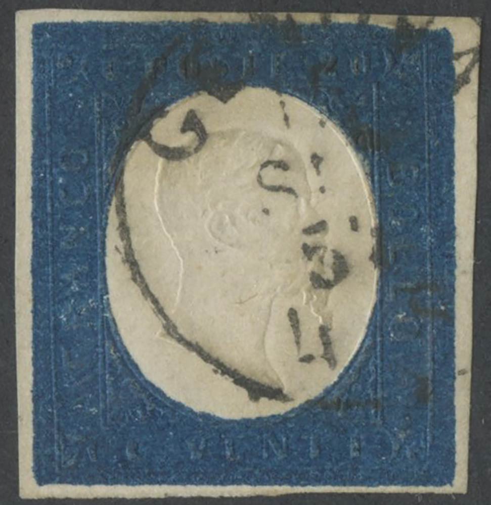 Precedente Lotto 250 Successivo Bertolami Fine Art - Piazza Lovatelli 1, 00186 Roma Web Auction 114 - Filatelia Sessione Unica martedì 5 aprile 2022 ore 12:00 (UTC +01:00) 1854, 20c. Azzurro N.8. (A+) (Cat.400) 1854, 20c. Azzurro N.8. (A+) (Cat.400)