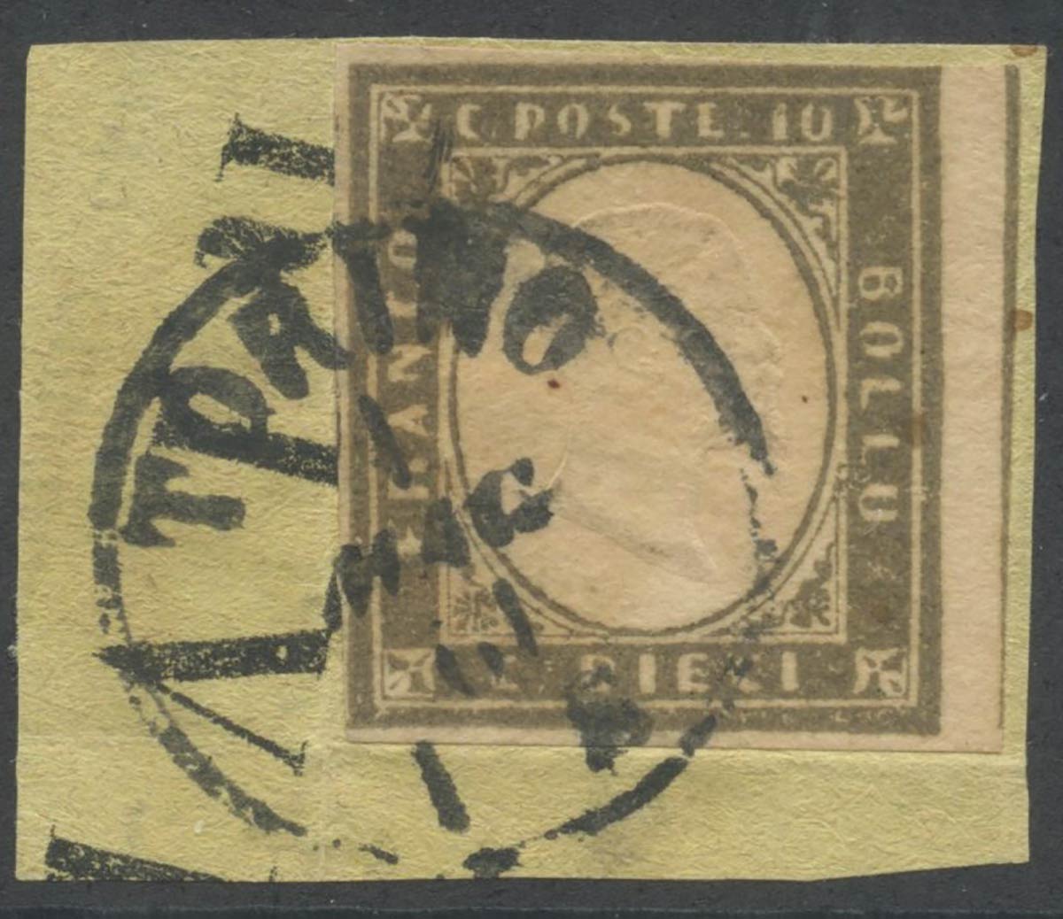 1861, 10c. In una interessantissima tonalità di colore su piccolo frammento di volantino. (A)