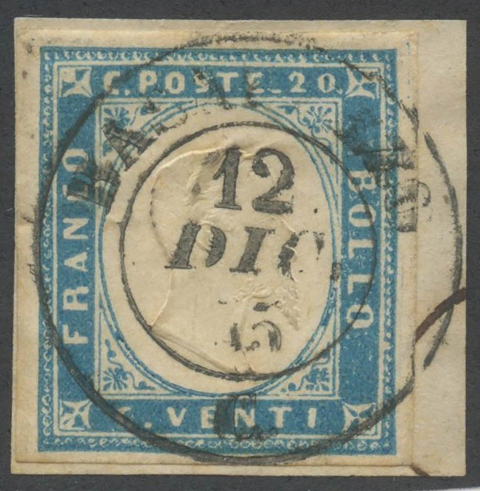 1857, 20c. Cobalto Chiaro n:15a annullato con il Doppio Cerchio con rosetta di BASALUZZO (R1). (A+) (Cat.3215++)