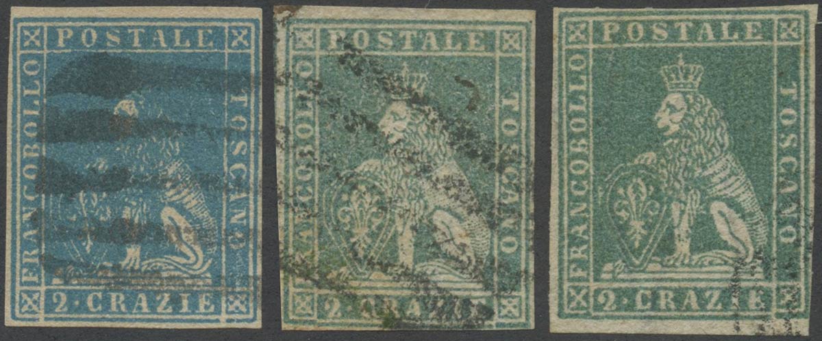 1857, 2cr. Nelle tre colorazioni catalogate: 13, 13a, 13b. (A+) (A.Diena per i primi due)