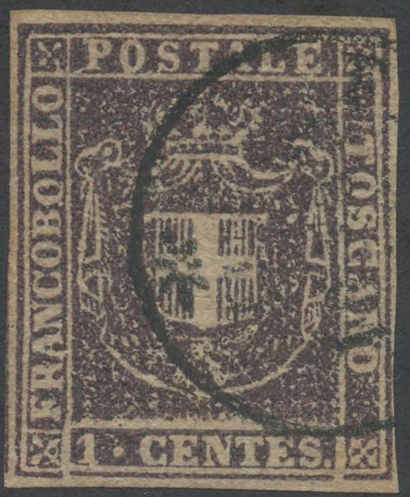 1860, 1c. N.17 Violetto bruno, usato. (A) (E. Diena, Oliva) (Cat.1.500)