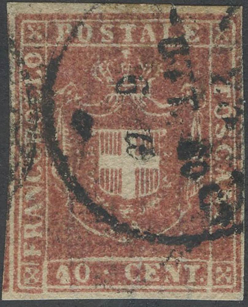1860, 40c. Carminio N.21, usato. (A+) (Sorani) (Cat.600)