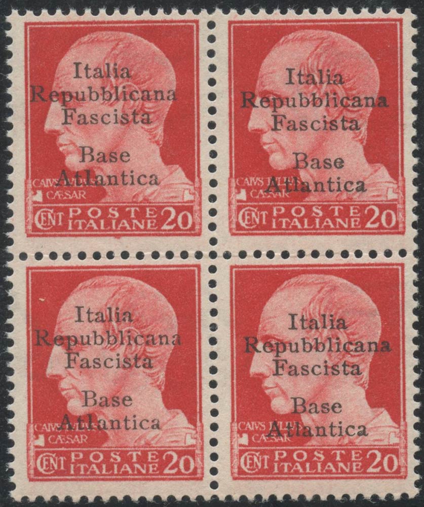 Lotto 444 | 1940, Base Atlantica N.8 in quartina nuova con gomma integra . Tutti firmati Raybaudi.