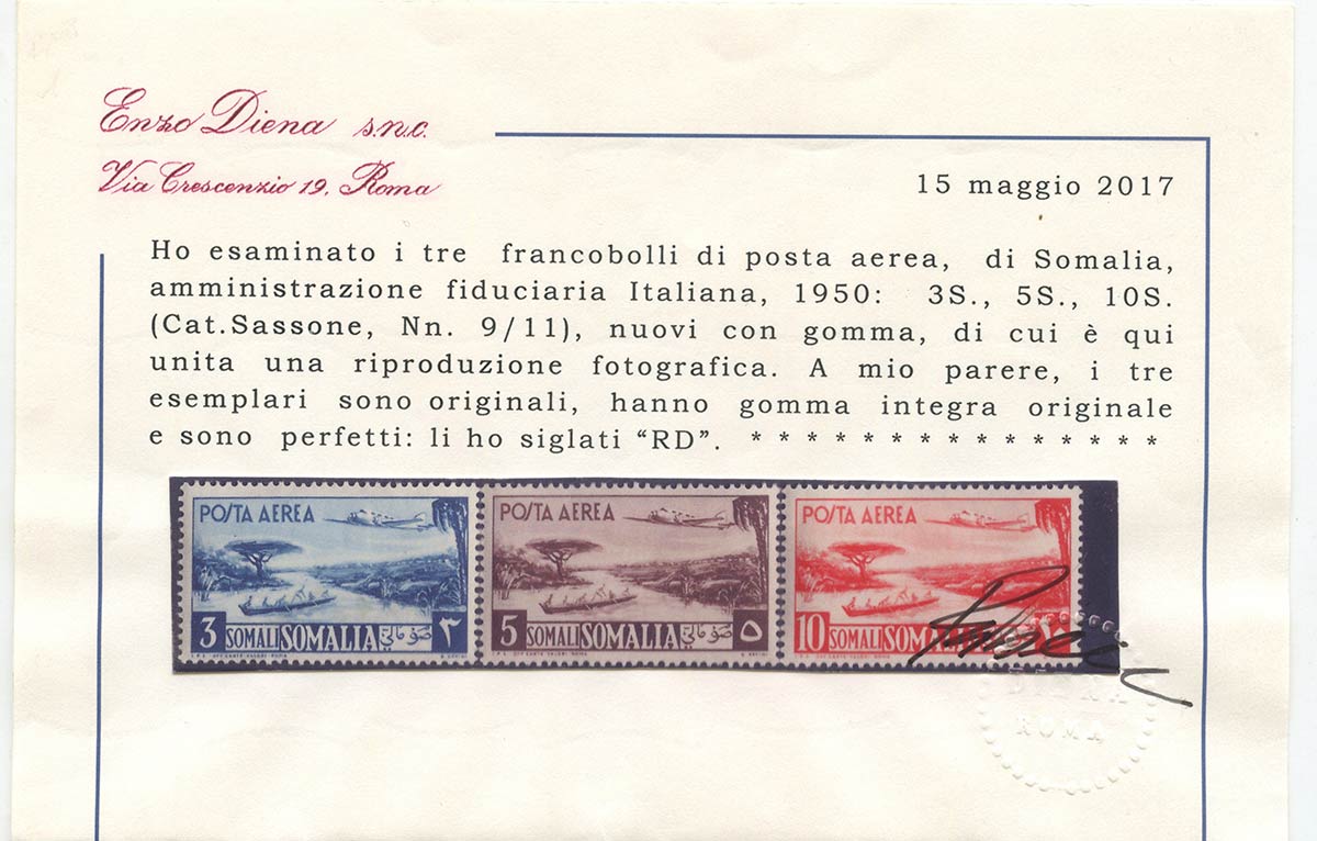 1950, Somalia. N.1/11 nuovi con gomma integra. Cert. R.Diena.per i N.9/11