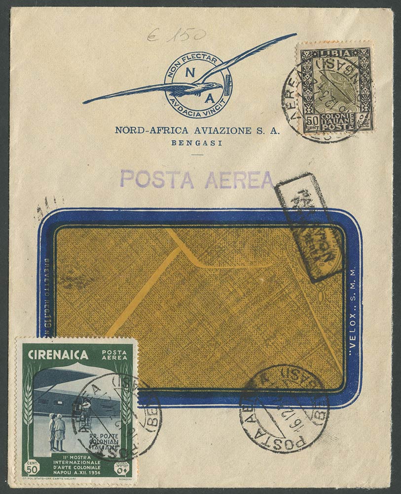 16.12.1934, Lettera da Bengasi per Roma affrancata tramite Cirenaica N.A25 e Libia N.51