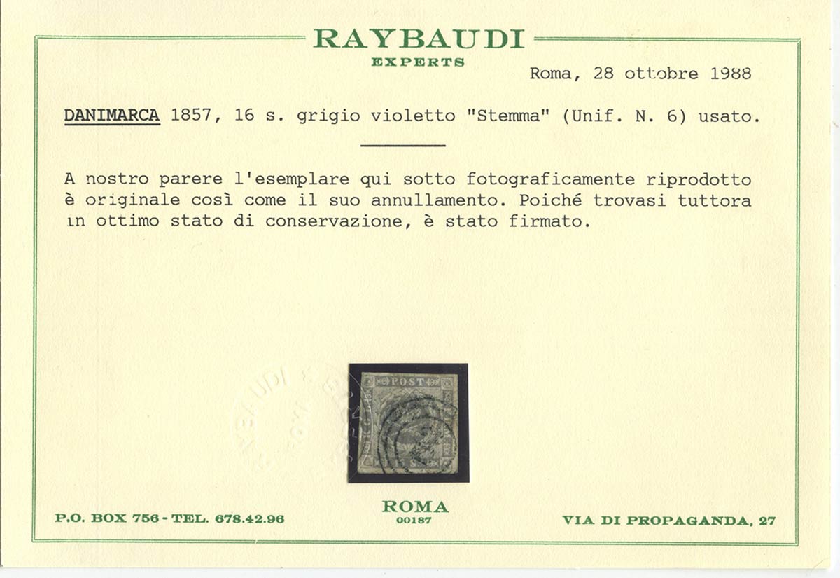 1854, 16s. Grigio Violetto N.6, usato. (A) (Cert.Raybaudi)