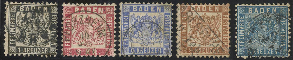 Precedente Lotto 578 Successivo Bertolami Fine Art - Piazza Lovatelli 1, 00186 Roma Web Auction 114 - Filatelia Sessione Unica martedì 5 aprile 2022 ore 12:00 (UTC +01:00) 1862, Baden. N.14, 16,17,18,19a. (A) 1862, Baden. N.14, 16,17,18,19a. (A)