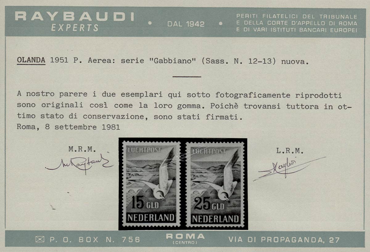 1951, A12/A13 serie nuova con gomma, linguellata. Certificato Raybaudi.