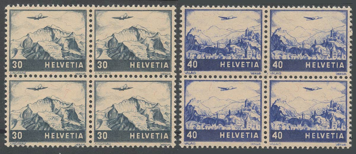 1948, Vedute serie di posta Aerea N.A42/A43 in fresche quartine nuove con gomma integra.