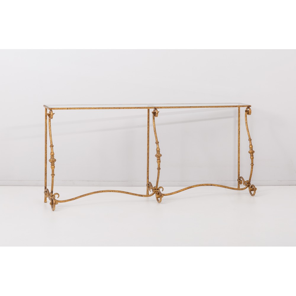AN IRON CONSOL WITH GLASS TOP ATTRIBUTABLE P. L. COLLI.