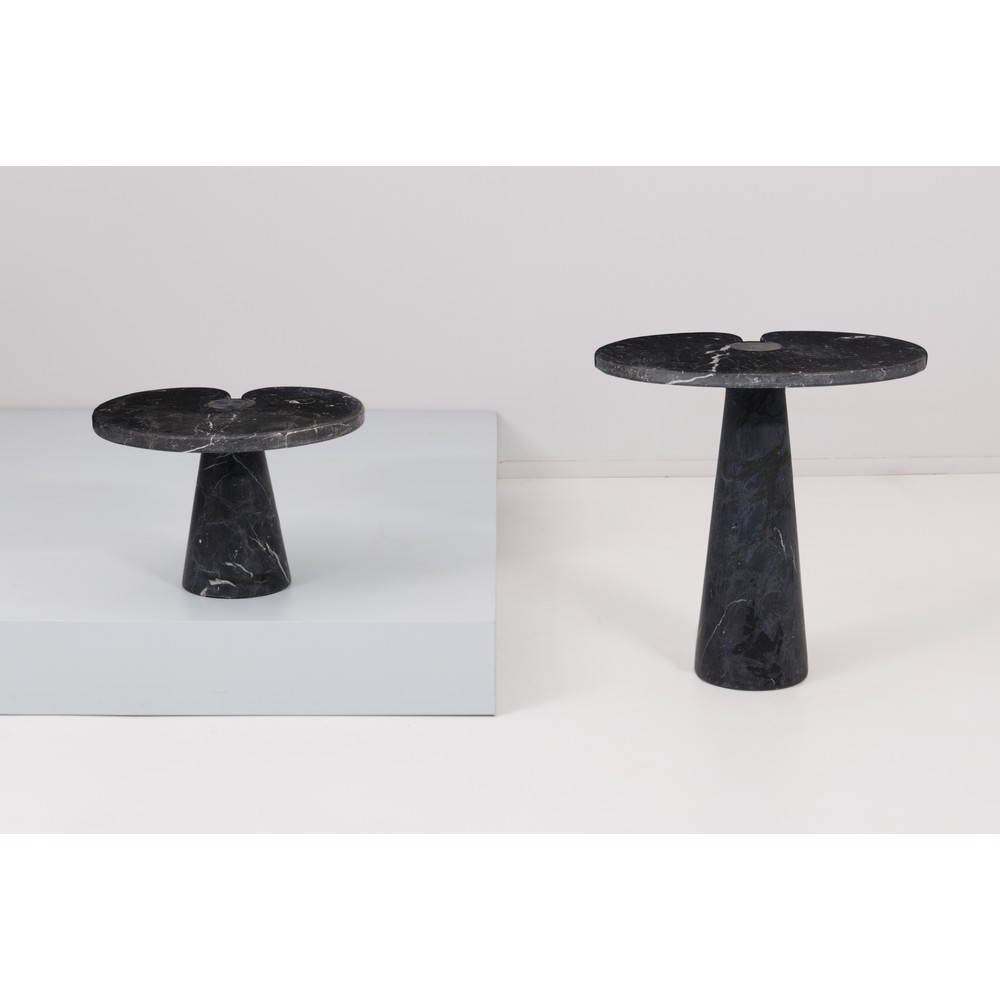 Due tavolini della serie Eros. Marmo nero Marquina. Usure.