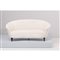 Divano tre posti a fagiolo, struttura in legno con imbottitura e rivestimento in tessuto bianco, con piedi conici in legno. Segni di usura.