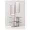 Consolle con specchiera, corpo dalle geometrie definite da incastri di due parallelepipedi, acciaio cromato con doppio ripiano in vetro trasparente. Specchiera in acciaio e vetro specchiato.