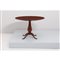 Tavolo in legno di mogano, piano circolare impiallacciato a spicchi, piede centrale con corpo a vaso lavorazione a coste, restaurato.