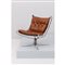 Poltrona modello ‘Falcon’, struttura in metallo cromato, tessuto, seduta e spalliera capitonnè in pelle cognac. Segni dl tempo.