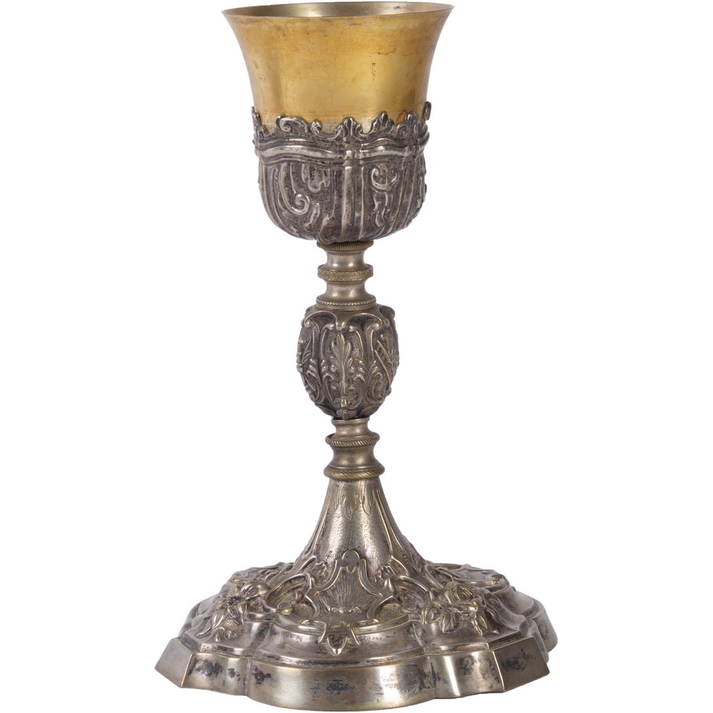 CALICE in argento riccamente sbalzato a mano