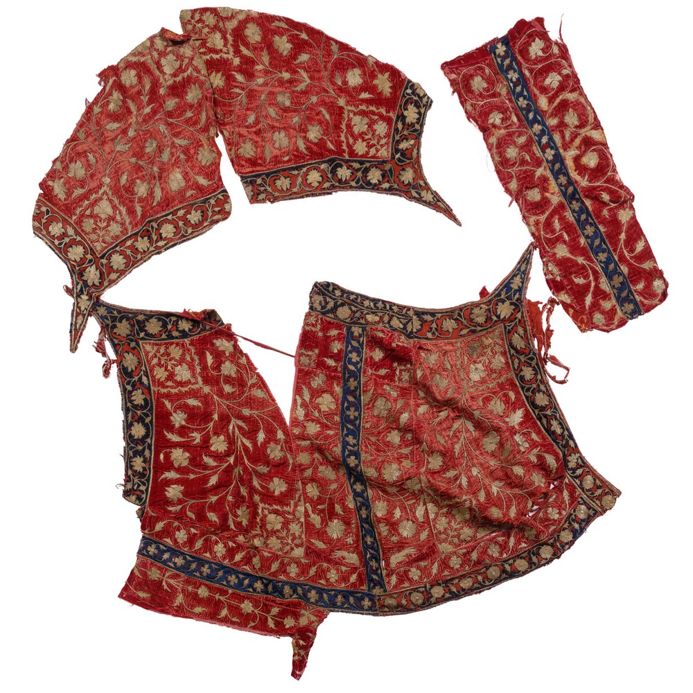 QUATTRO FRAMMENTI di stoffa ricamati con filo d’argento